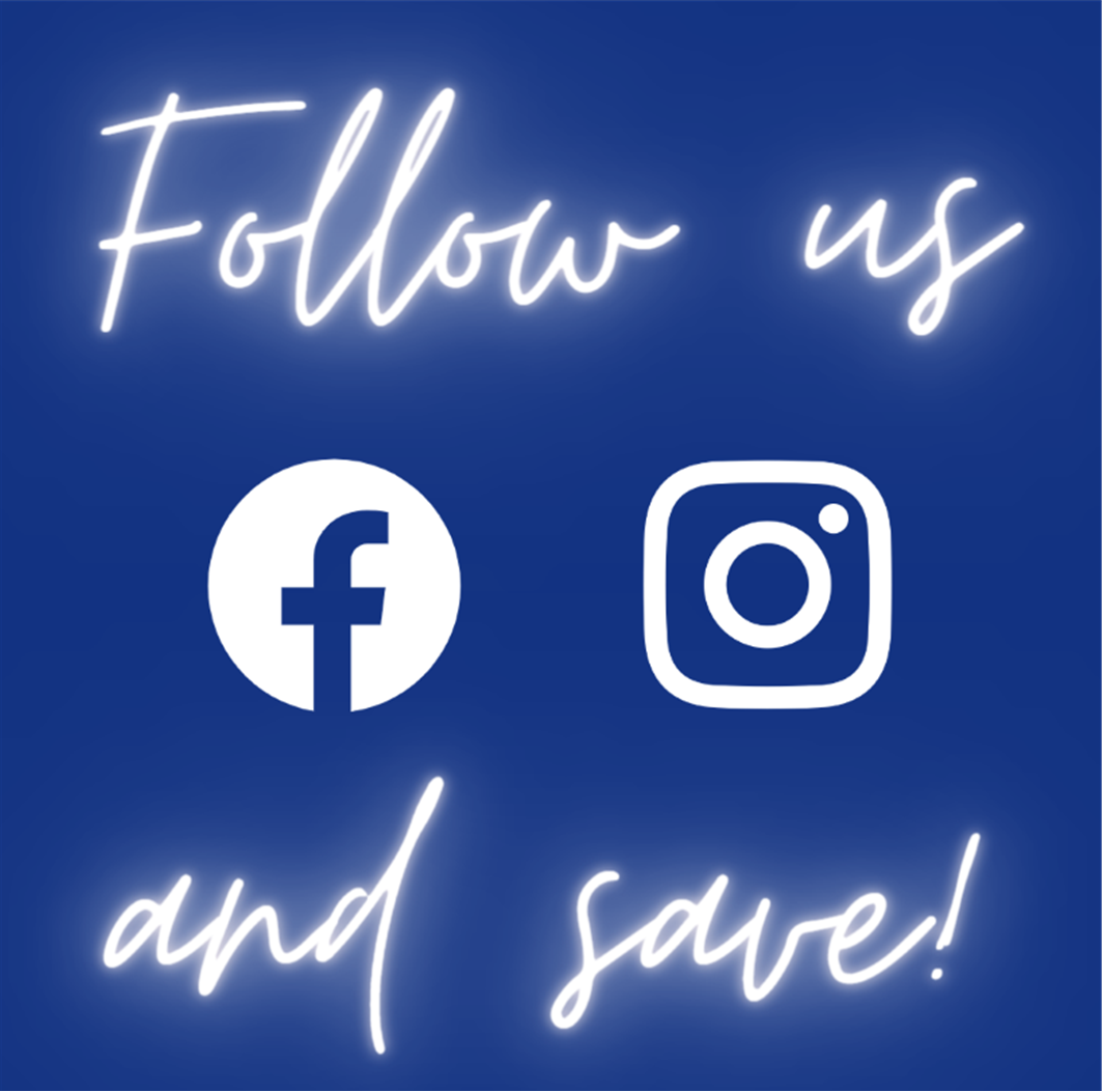 Visit our Facebook or Instagram and follow us (Like for Facebook). Next, private message us to request a coupon for our stores!