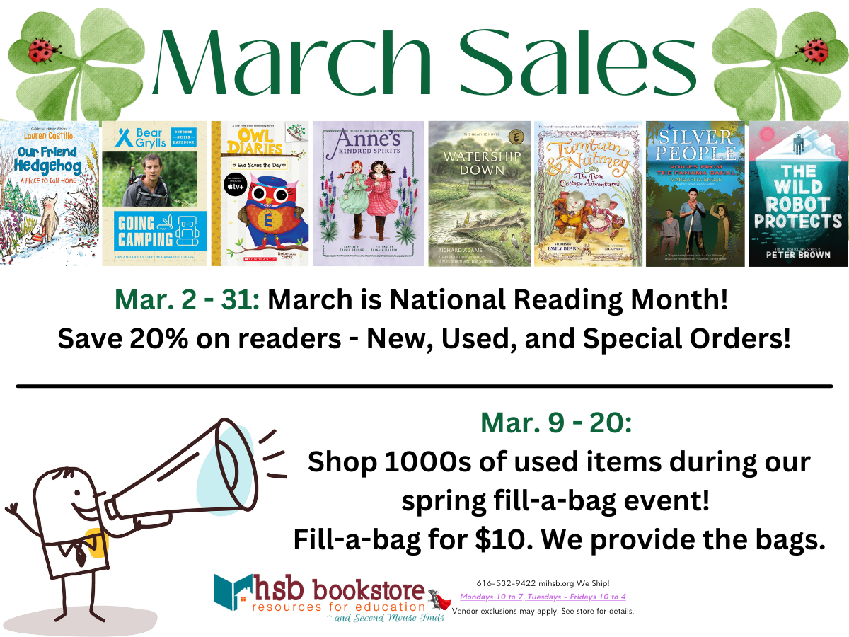 Mar. 2 - 31: March is National Reading Month! Save 20% on readers - New, Used, and Special Orders!